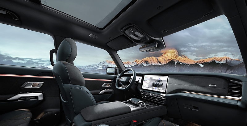 Внутри продолжается тема «космического корабля». Интерьер, построенный вокруг идеи «вида капитана», совмещает цифровые и физические элементы управления. Помимо виртуальной приборной панели, центральное место занимает 14,6-дюймовый сенсорный экран, но для ключевых функций (вентиляция, выбор режима движения) сохранены физические кнопки.