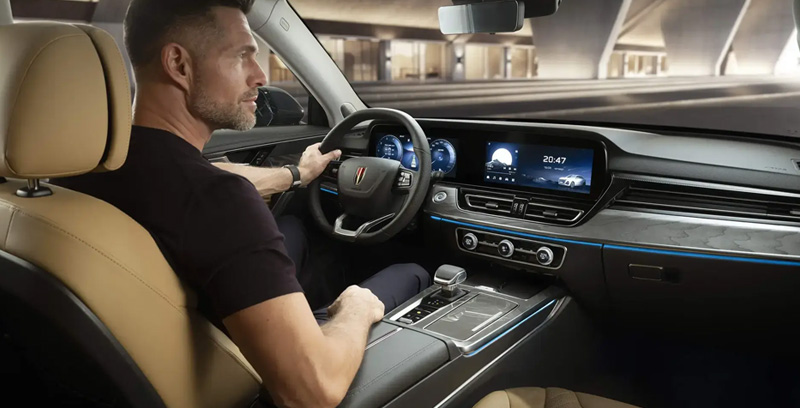 В салоне кроссовера двойной 12,3-дюймовый ЖК-экран в сочетании с системой проекционного дисплея. В передней панели использован дизайн линий Мюллера Лейера, создающий иллюзию, которая увеличивает визуальную ширину автомобиля.